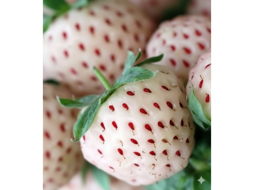 Jahodník Ananas nenese své jméno jen tak pro nic za nic. I když mají plody tvar a strukturu jako jahody, voní a chutnají po ananasu. Sklizeň můžete očekávat v červnu. Velikost plodů je menší, dorůstají přibližně 1,5 – 2,3 cm. Zralý plod má bílou barvu s červenými semeny.