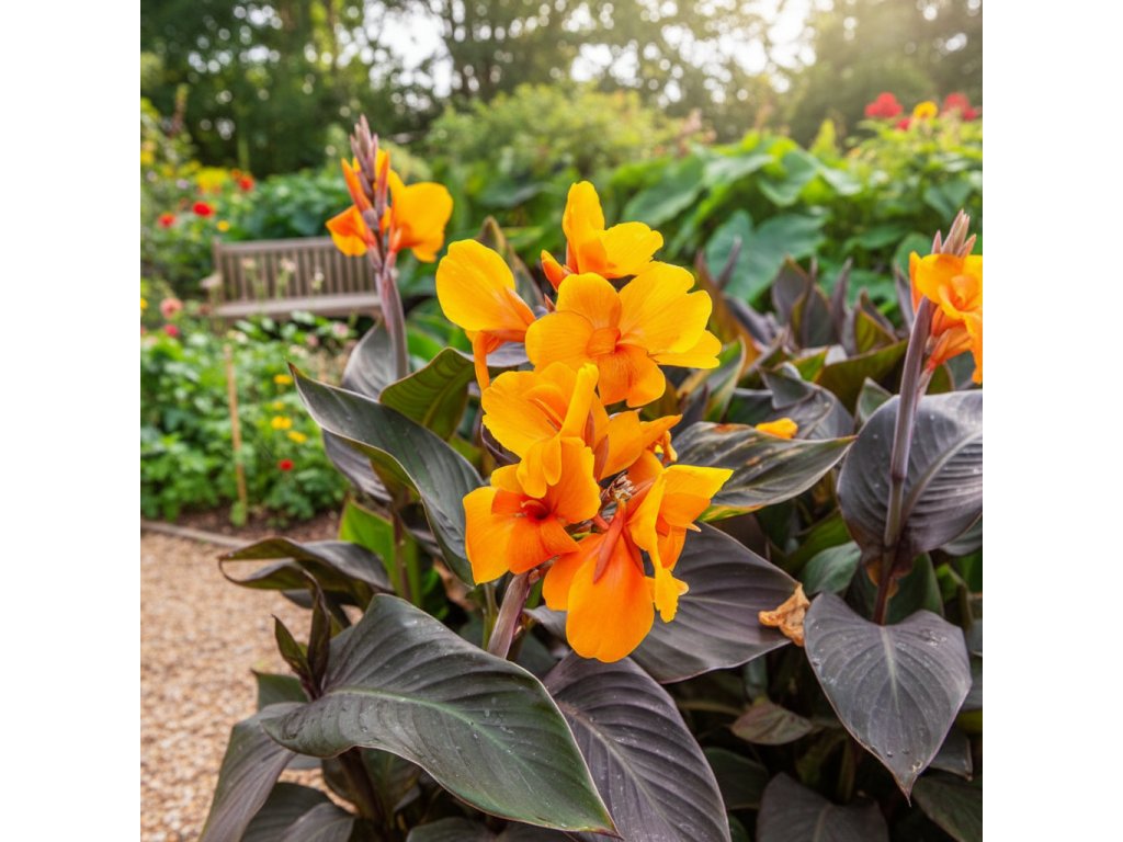 Dosna ‘Liberty’ (Canna ‘Liberty’) je nápadná hlíznatá rostlina s výraznými zářivě oranžovými květy, které dodají vaší zahradě teplý a energický vzhled. Tmavě purpurové listy vytvářejí působivý kontrast s květy, a dělají z této odrůdy výjimečnou ozdobu záhonů a velkých květináčů.