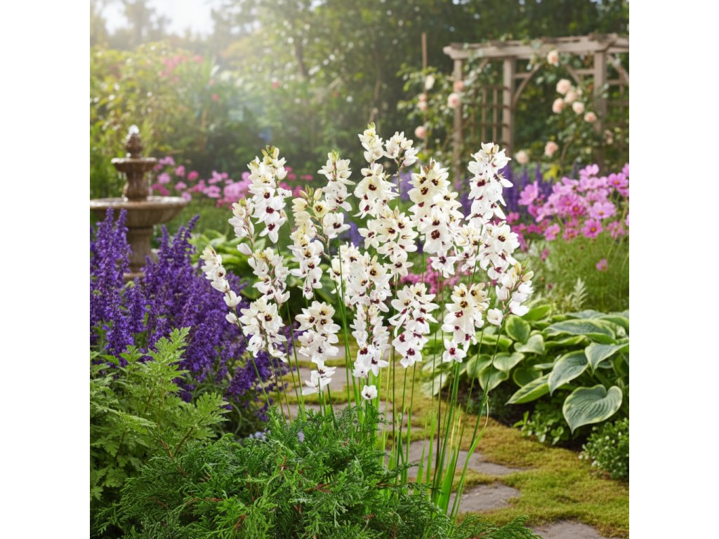 Duhovnice (Ixia 'Giant') je impozantní odrůda známá svými bílými hvězdicovými květy. Tato cibulovina dodá zahradě příjemný a exotický nádech. Květy jsou uspořádány na dlouhých, štíhlých stoncích, což je činí ideálními pro řez a aranžmá ve váze.