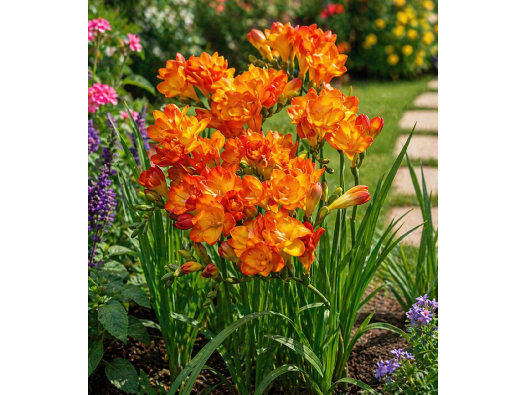 Frézie patří díky své něžné kráse, množství barev a příjemné vůni k jedněm z nejoblíbenějších jarních květin. Ale pozor, pěstování frézií je spíše pro zkušenější zahrádkáře, jelikož vyžadují stabilní závlahu, pravidelné přihnojování a dostatek světla. Avšak za vytříbenou péči vám poděkují krásnými oranžovými květy, které budou pýchou vaší zahrádky či balkonu.