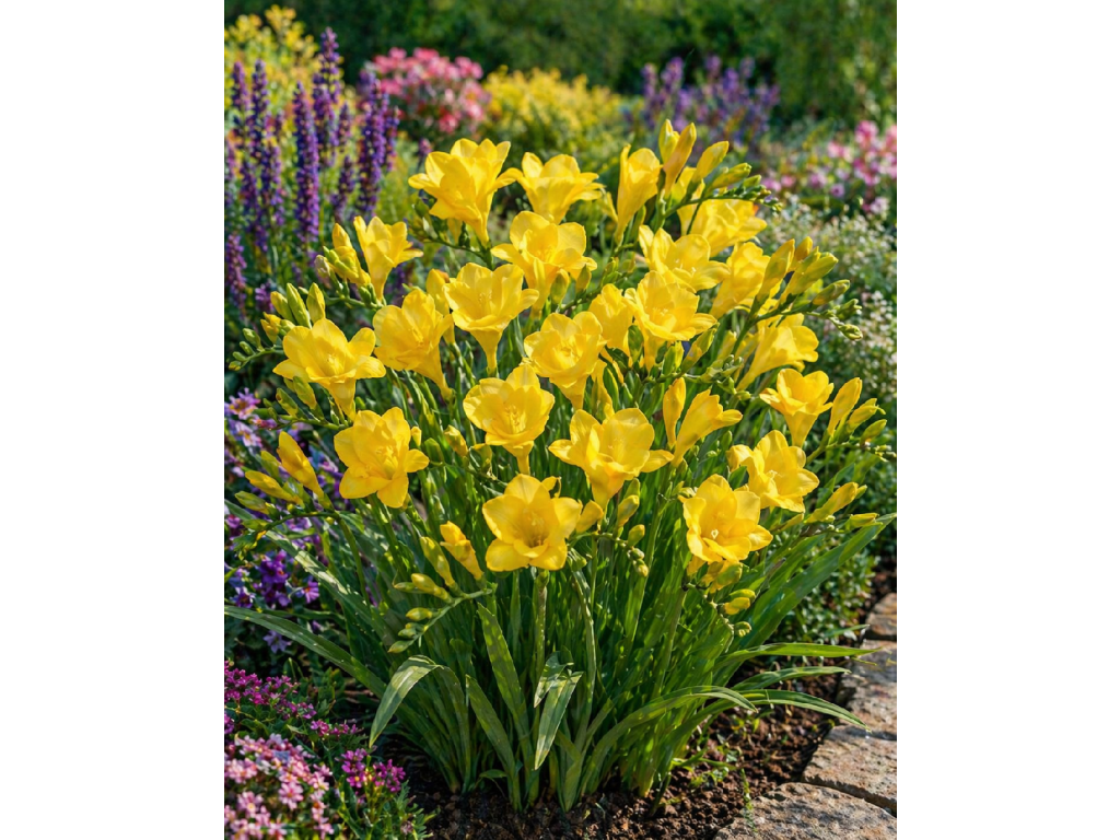 Frézie Single Yellow vám svými krásnými květy žluté barvy rozzáří zahradu. Tato odrůda může dorůst do výšky 50 cm a kvete během letních měsíců, od července do srpna. Do zahrady si ji můžete vysadit od dubna do května.