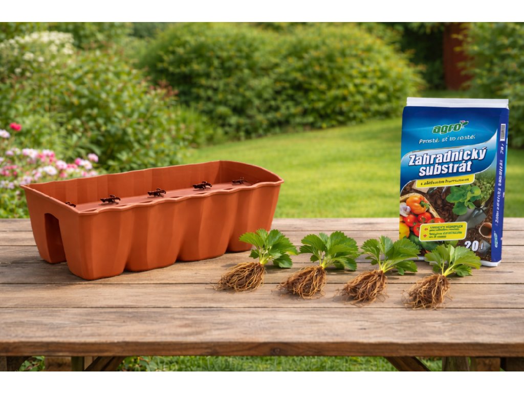 Chcete si vypěstovat vlastní sladké jahody i na balkoně? Tento praktický set obsahuje vše, co potřebujete pro snadné pěstování přímo na zábradlí.