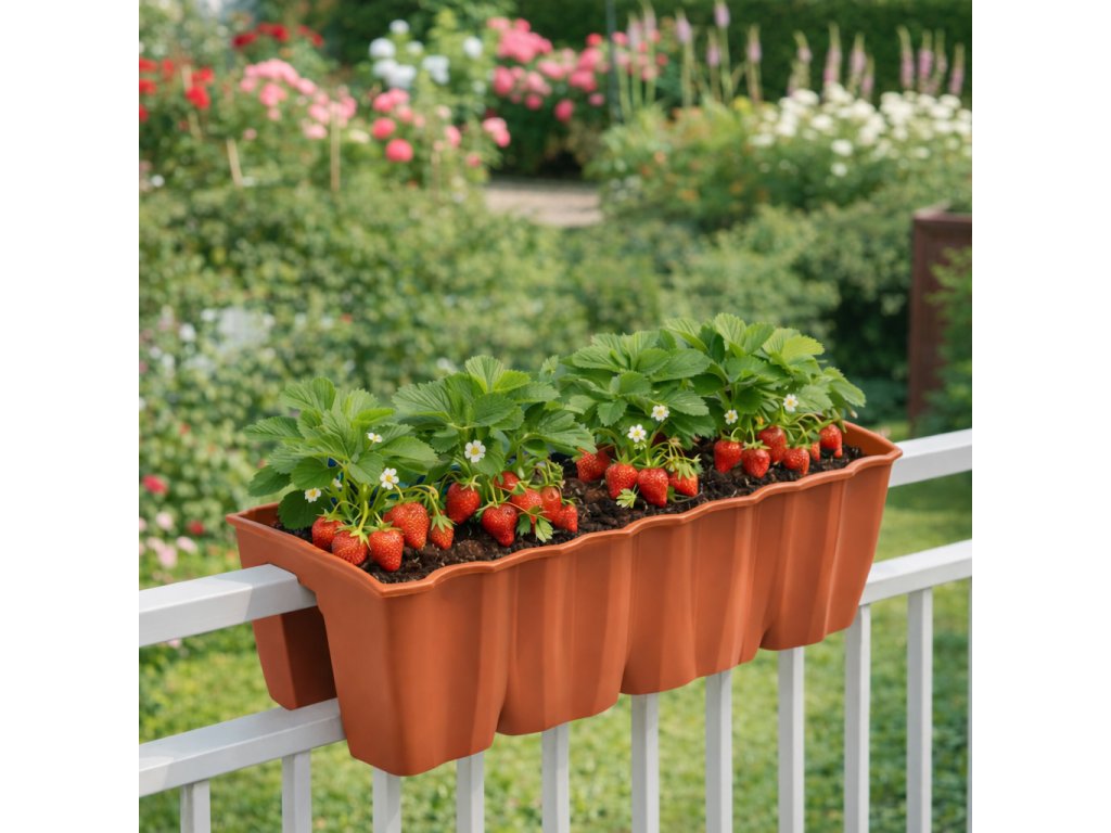 Set jahod do truhlíku na zábradlí - terakota