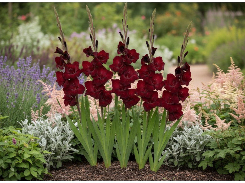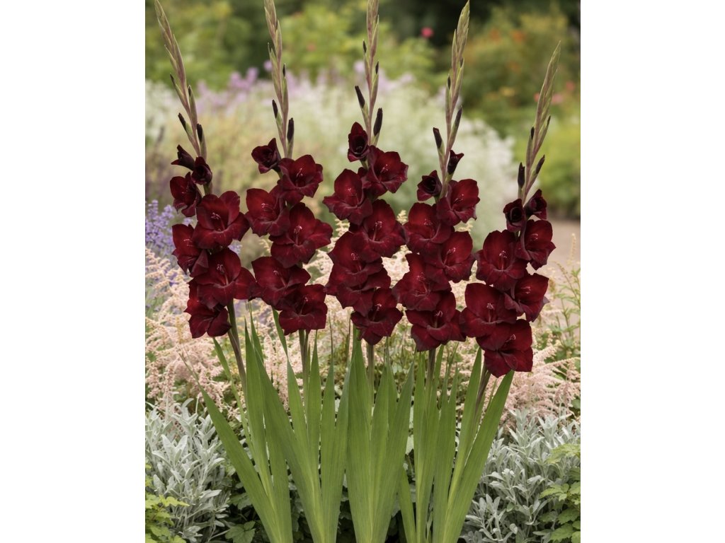 Mečík 'At Night' si získá vaše srdce svým magickými tmavě červenými květy, které se rozvíjejí na stoncích dosahujících výšky 100–120 cm a krásně kvetou od července, kdy si můžete užívat jejich intenzivní syté odstíny.
