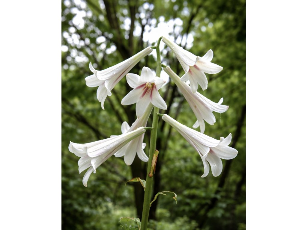 Obrovské květy jsou bílé s červenofialovým středem ve tvaru trubky. Po přivonění vás potěší příjemná vůně. Lilie kvetou od července do srpna.