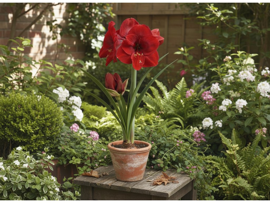 Hvězdník (Hippeastrum) 'Red Reality' je pozoruhodný druh amarylisu s impozantními květy, jejichž průměr dosahuje až 21 cm. Tyto květy se pyšní intenzivní vínově červenou barvou, která dodává rostlině luxusní a výrazný vzhled. Tento kultivar je ideální pro ty, kteří hledají nápaditý a dekorativní prvek do svého interiéru nebo zahrady.