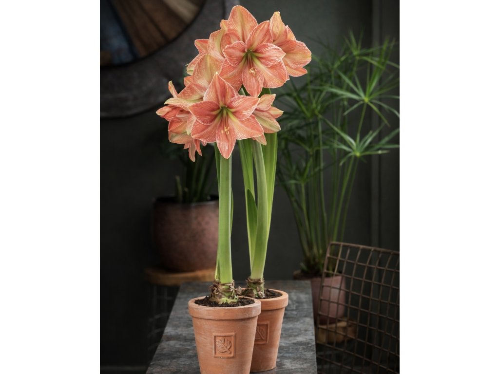 Hvězdník 'Terra Cotta Star' (Amaryllis 'Terra Cotta Star') je jedinečná odrůda, která zaujme každého milovníka květin. Na pevných stoncích se pyšní nádhernými květy v hřejivých odstínech terakoty. Kombinace měděně oranžové, lososové a cihlové barvy vytváří neotřelou podívanou i přesto, že venku panuje zima a šeď. Tato cibulovina totiž kvete v zimních měsících. Kromě toho, že ozdobí váš interiér, hodí se také jako netradiční dárek.