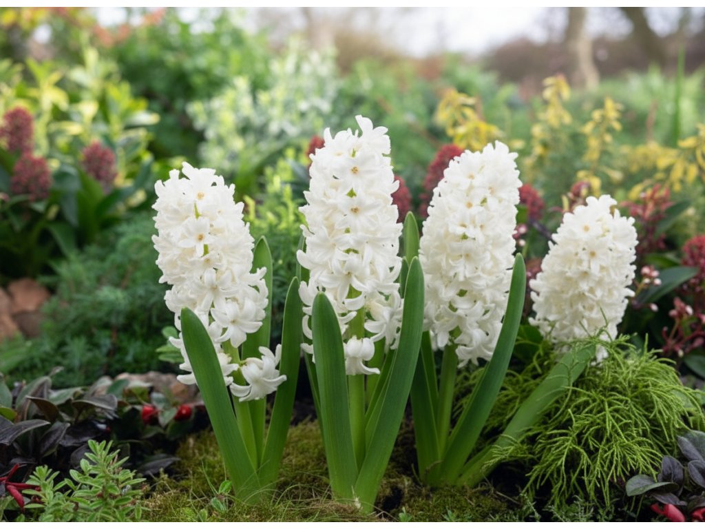 Hyacint (Hyacinthus) 'Aiolos' je opojně aromatický kultivar hyacintu, který dorůstá do výšky okolo 20 cm. Tento vzpřímeně rostoucí hyacint se pyšní hustými klasy pokrytými hvězdicovitými květy v čistě bílých barvách. Bílé květy nádherně kontrastují se svěže zelenými, mečovitými listy, čímž vytvářejí elegantní a harmonický vzhled. Hyacint 'Aiolos' je ideálním doplňkem do záhonů i květináčů, kde svými květy přinese nádech svěžesti a čistoty.