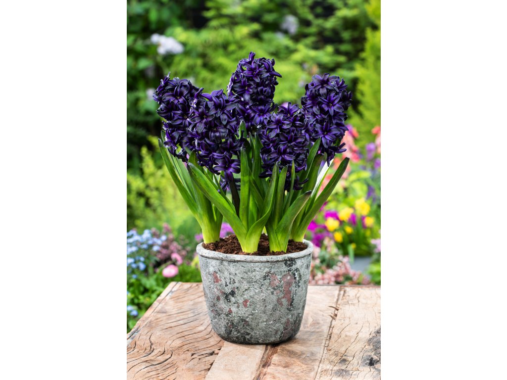 Hyacint 'Dark Dimension' (Hyacinthus orientalis 'Dark Dimension') patří mezi nejtmavší odrůdy hyacintů, jaké kdy byly vyšlechtěny. Jeho květy vynikají sytě fialovou až téměř černou barvou, která na slunečním světle září sametovým leskem. Každé květenství tvoří hustý hrozen drobných hvězdicovitých květů, které jsou nejen vizuálně působivé, ale i intenzivně voňavé. Hyacint 'Dark Dimension' dodá zahradě mystickou atmosféru.