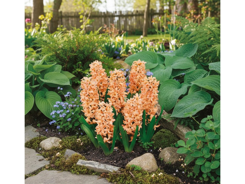 Hyacint (Hyacinthus) 'Odysseus' je působivá odrůda s meruňkově oranžovými květy, které se tyčí na silných stoncích a vytvářejí nádherné laty. Listy jsou špičaté a mají svěží zelenou barvu, která dokonale kontrastuje s květy. Dorůstá do výšky 30 cm a kvete v březnu a dubnu. Tento hyacint je skvělý v kombinaci s růžovými a bílými květy, které dohromady vytvářejí ohromující barevný efekt.