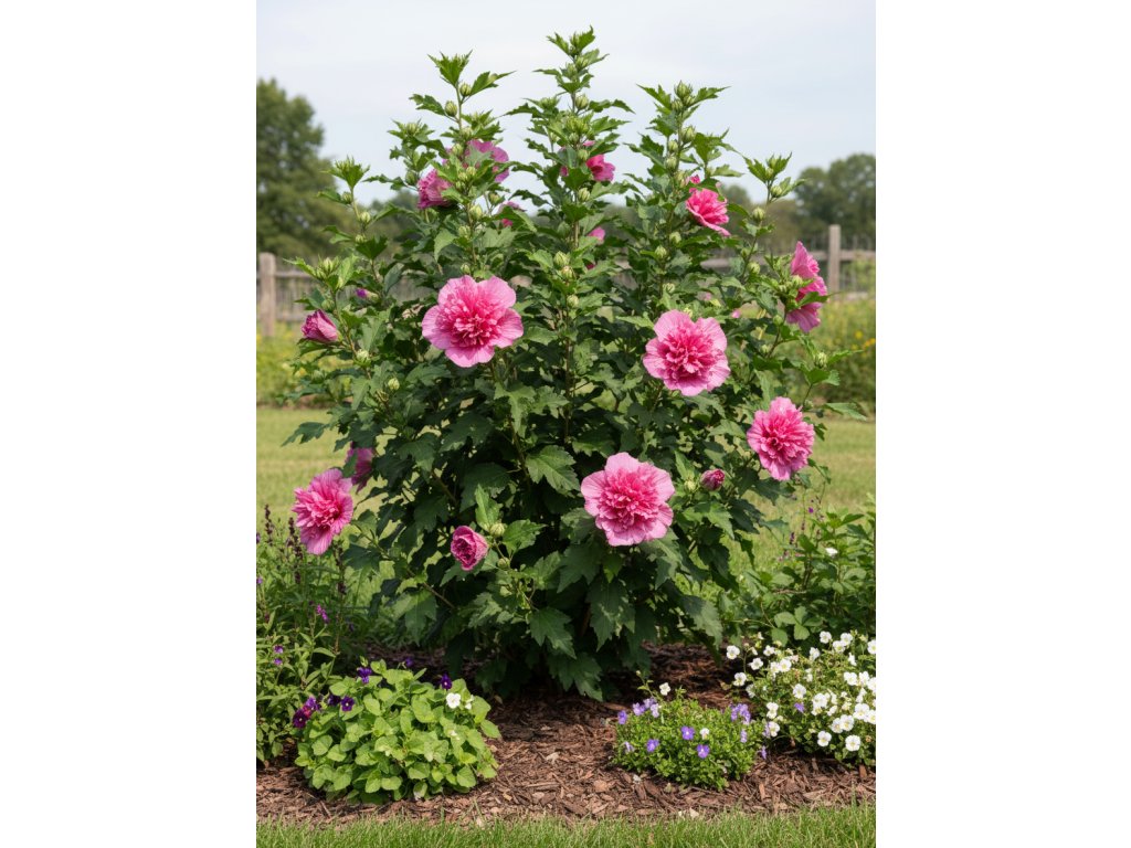 Ibišek syrský ‘Duc de Brabant’ (Hibiscus syriacus 'Duc de Brabant') kvete dlouho, od léta do podzimu, a stává se výraznou dominantou zahrady v období, kdy už většina keřů odkvetla.