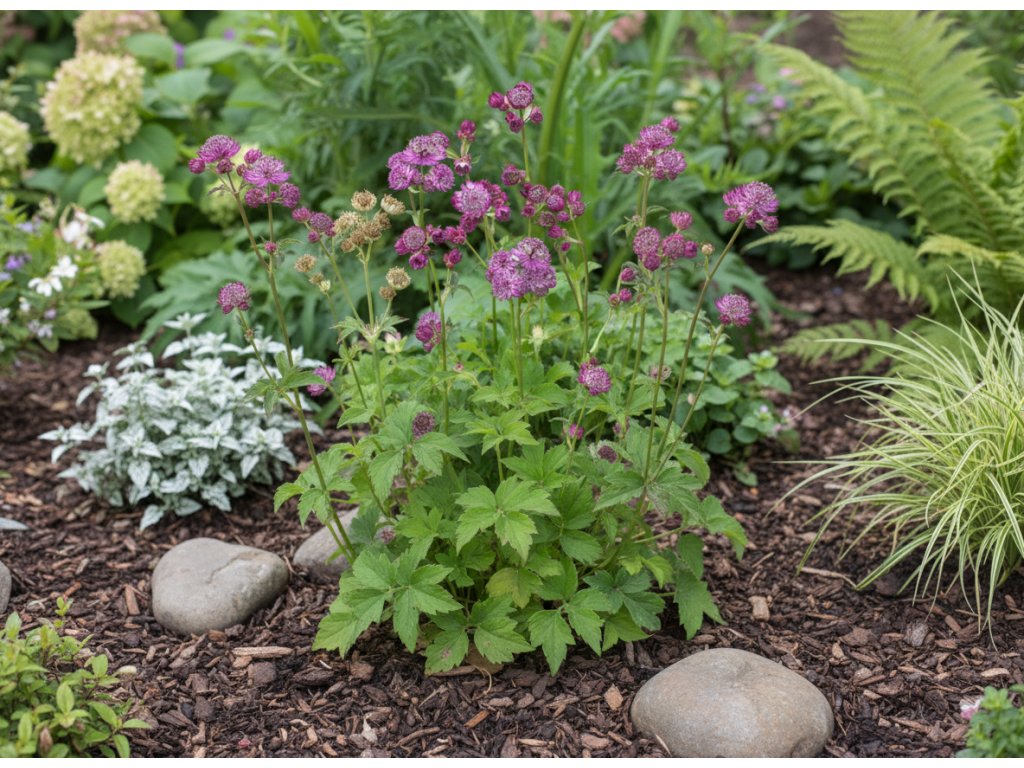 Jarmanka větší (Astrantia major 'Rosea') je jemná a půvabná trvalka, která zaujme svými růžovými květy s vykrajovaným tvarem připomínajícím hvězdu. Tato odrůda je ideální pro romantické a přírodní zahrady, kde vytváří nenápadnou, ale přesto nepřehlédnutelnou krásu. Její květy přitahují opylovače a jsou vhodné také k řezu, ať už do čerstvých nebo sušených aranžmá.