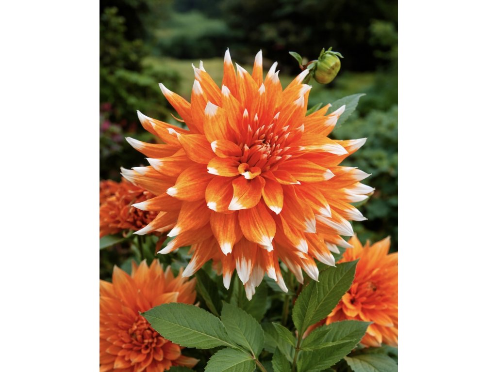 Jiřinka Colour spectacle bude ozdobou každé zahrady. Její velký květ tvoří oranžové okvětní lístky, které rostou do špičky a jsou zbarveny do běla. Patří do skupiny kaktusovitých jiřin, které svým vzhledem opravdu často připomínají kaktus.