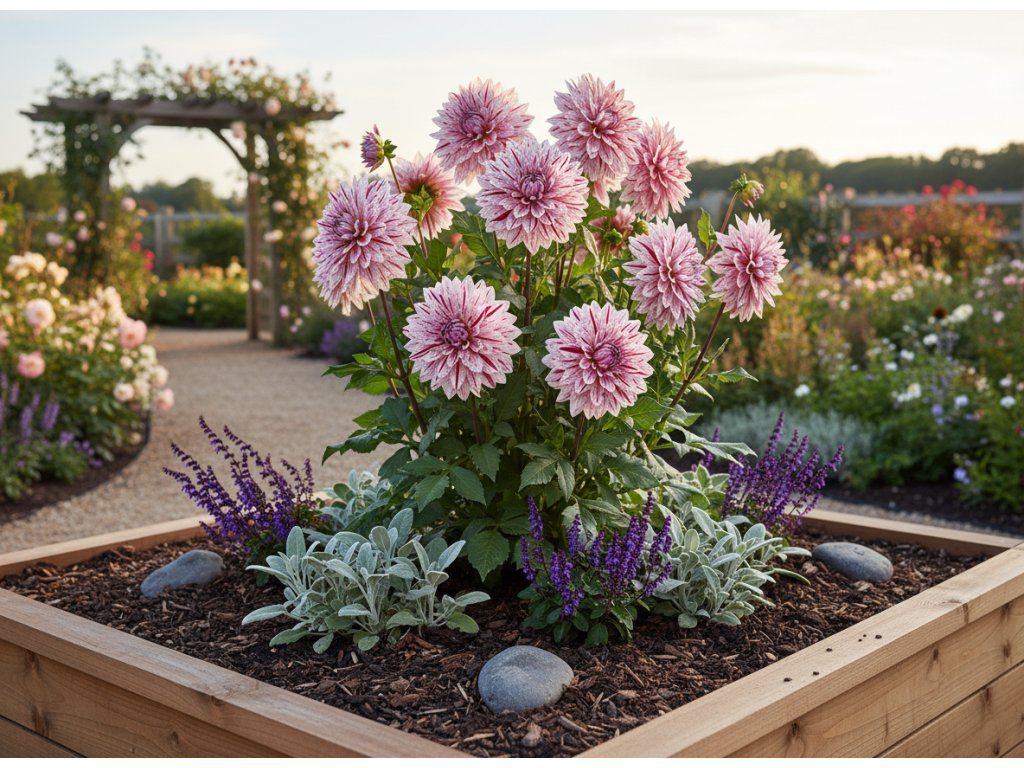 Jiřina 'Fern ridge painted lady' je nádherná květina v krémově růžovém odstínu s cákanci a pruhy rubínově červené barvy představuje skvělý způsob, jak rozjasnit vaši zahradu.