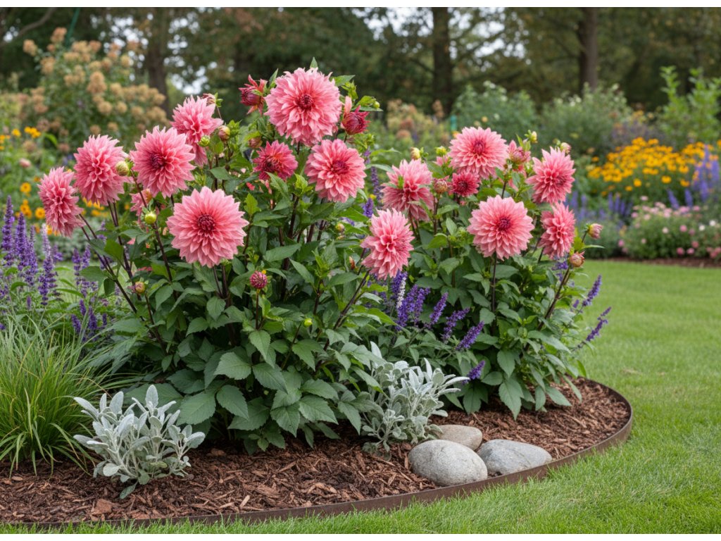 Jiřina 'Islander' bude ozdobou každé zahrady. Její květy jsou nádherně plné a objemné, s jemně zvlněnými okvětními lístky v odstínech růžové s nádechem lososové. Tato odrůda působí romanticky a přitáhne pozornost svou elegantní krásou a jemnými barevnými tóny.