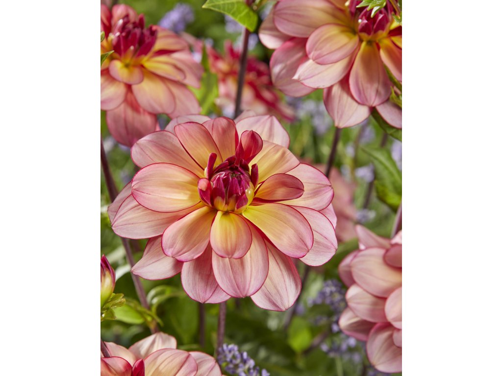 Další překrásná květina, která se může pyšnit tím, že patří mezi jiřiny. Zde dává na odiv své naprosto elegantní leknínové květy v broskvové barvě s tenkou červenou linií, která okvětní lístky lemuje. Takovou krásu si dokáží vypěstovat i začátečníci, kteří by měli její péči zvládnout. Jiřinkám se obecně v našem podnebí velmi daří. Stačí je nechat hezky na slunném stanovišti a následně se radovat z jejich květů. Ve stínu vám sice vyrostou do větší výšky, ale příliš mnoho nepokvetou, tak si na to dávejte raději pozor.
