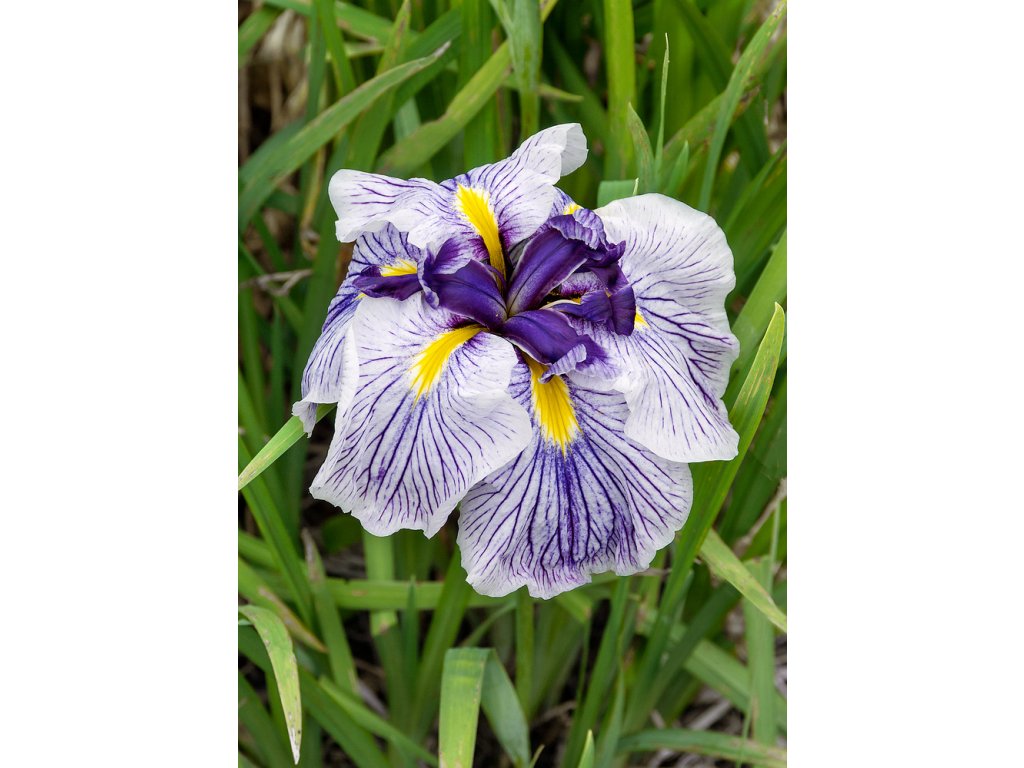 Kosatec (Iris) japonský ´Dinnerplate Cheese Cake´ je jedinečným exemplářem svého druhu. Vyniká svým impozantním otevřeným květem, který poutá pozornost svou stříbřitě bílou barvou kontrastující s borůvkově fialovou a žlutou kresbou uprostřed. Jeho květy vyrůstají na pevných stoncích, které se tyčí do výšky až 100 cm. Listy, ve tvaru meče, přidávají kontrast svou jasně zelenou barvou. Tento krasavec rozkvétá od května do června a najde své uplatnění nejen okolo jezírek, ale i v tradičních záhonech. Preferuje vlhčí půdu.