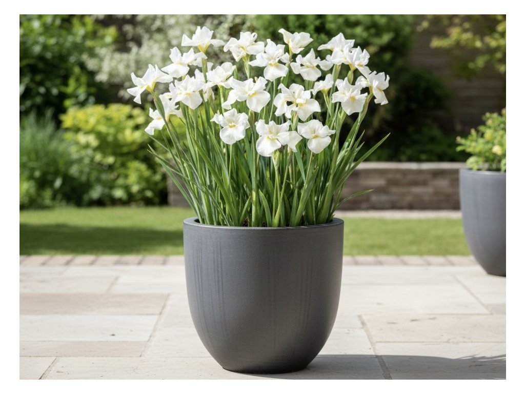 Kosatec 'Gull´s wing' v květináči