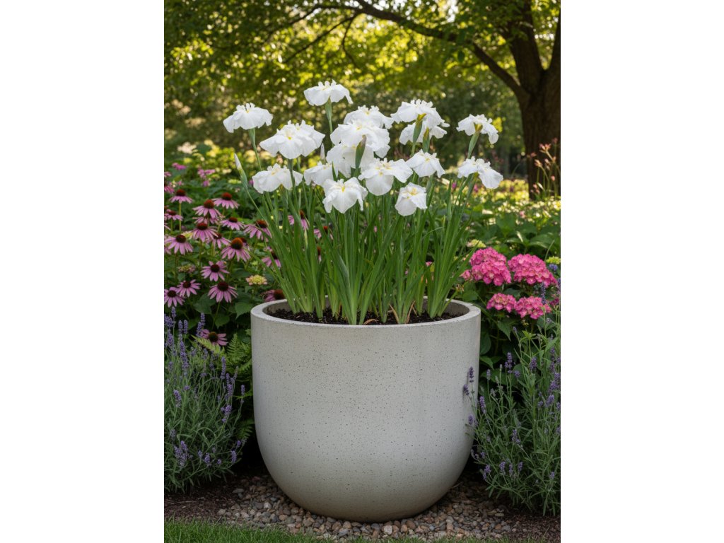Kosatec 'White Ladies' v květináči