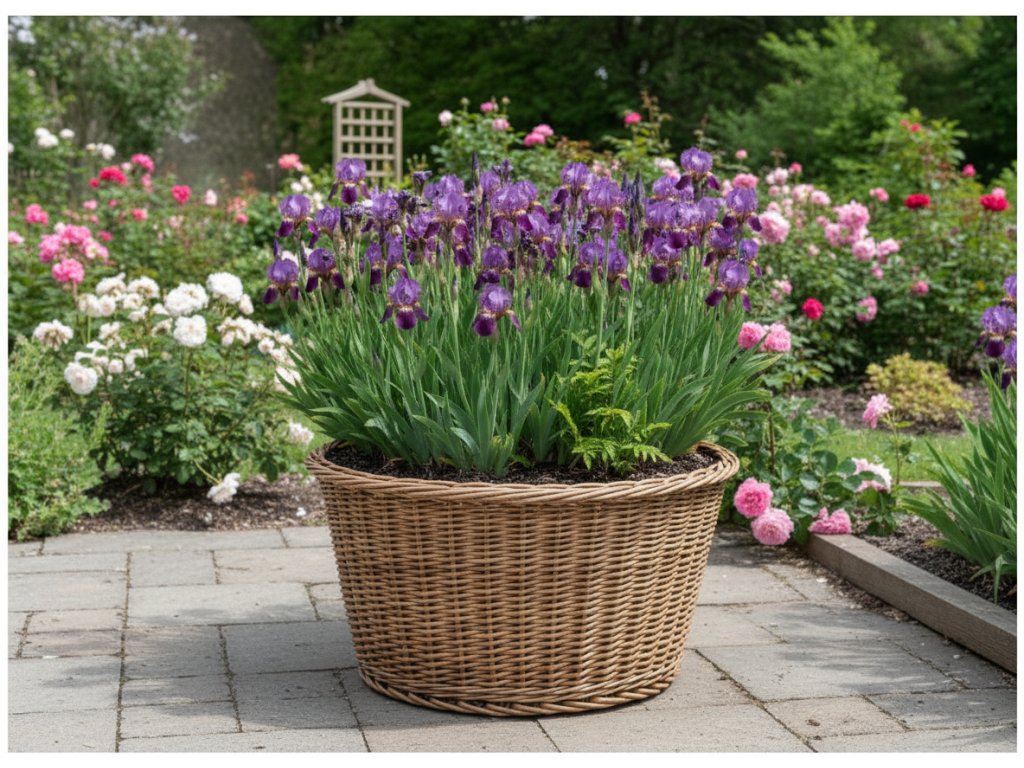 Kosatec 'Sparkling Rose' v květináči