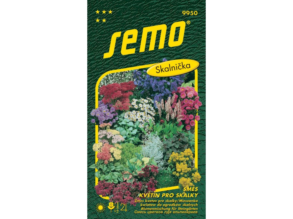 Směs květin pro skalky. Zastoupené druhy: Alyssum, Arabis, Aubrietta, Campanula, Cheiranthus, Linum, Dianthus, Silene, Viola aj.