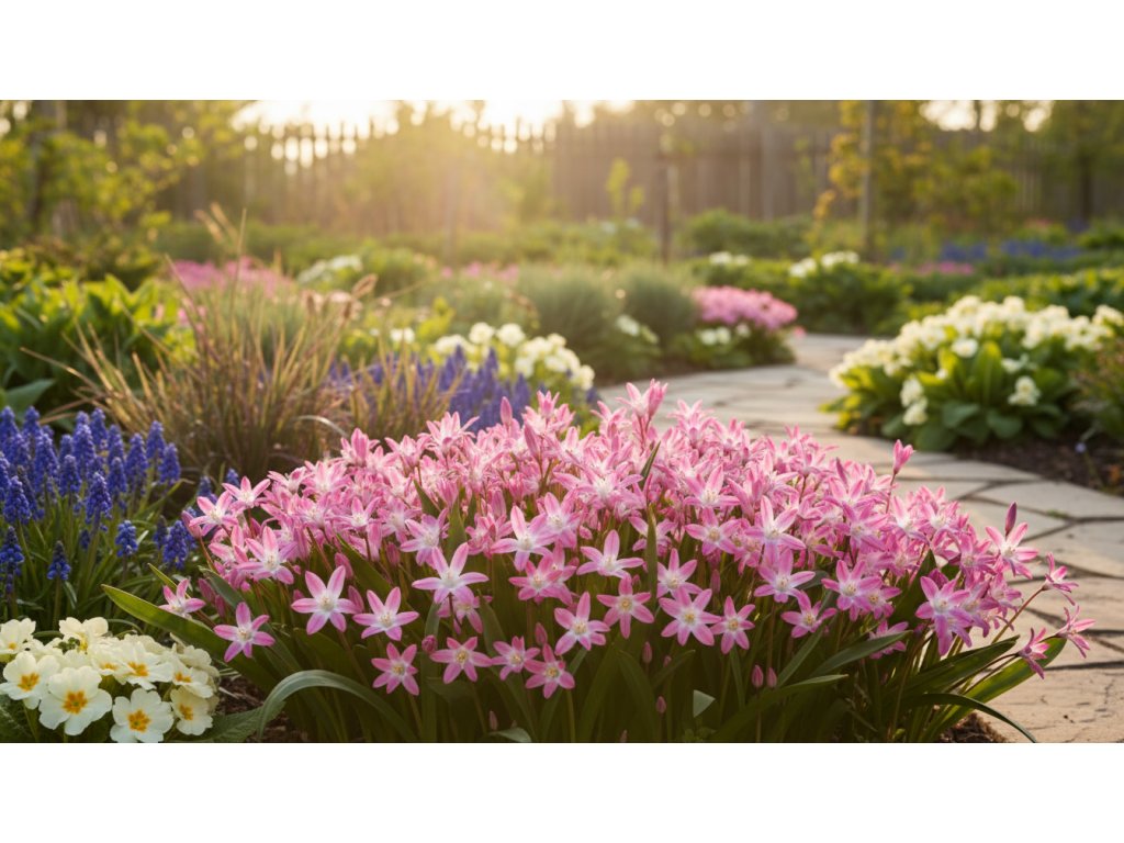 Ladonička 'Pink Giant' (Chionodoxa Pink Giant), známá také jako Sláva sněhu, patří mezi nejkrásnější jarní cibuloviny. Tato rostlina vytváří vonné jednostranné hrozny jemně růžových květů s bílým středem na vrcholu tmavých stonků a úzkých listů. S výškou okolo 15 cm je ideální pro vytváření nádherných květinových koberců pod stromy, keři, na okrajích záhonů nebo ve skalkách. Ladonička kvete od března do dubna a lze ji také vysadit do nádob pro ozdobu zápraží či teras.