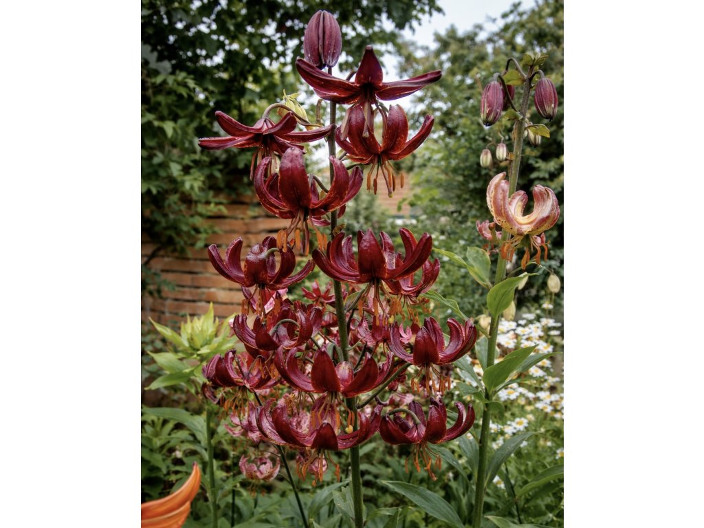 Hybrid lilie Claude Shride vyšlechtěný v sedmdesátých létech dvacátého století má tmavě mahagonové červené květy s malými červenými tečkami se zářivou zlatooranžovou a tmavě oranžovou základnou. Je to odrůda velmi oblíbená motýli, kteří budou vaši zahradu společně s těmito honosnými květy zdobit od června do srpna.
