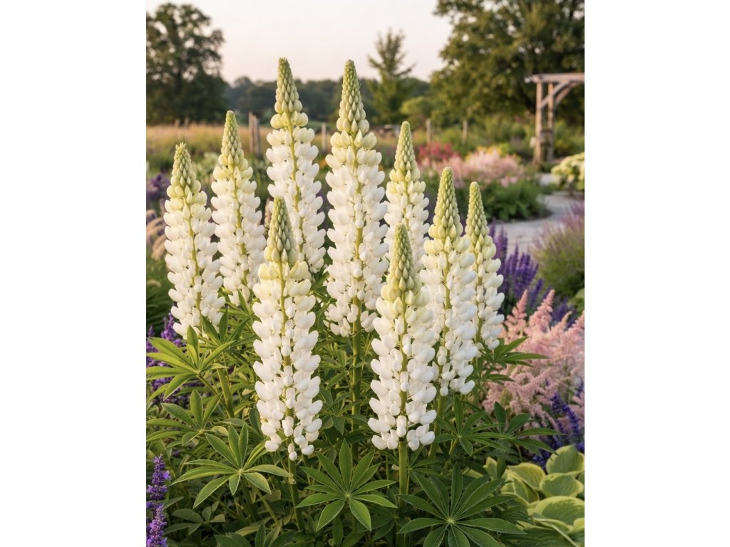 Vlčí bob 'Noblemaiden' vnese do vaší zahrady čistotu a eleganci, která vynikne v kombinaci s barevnými letními květy.
