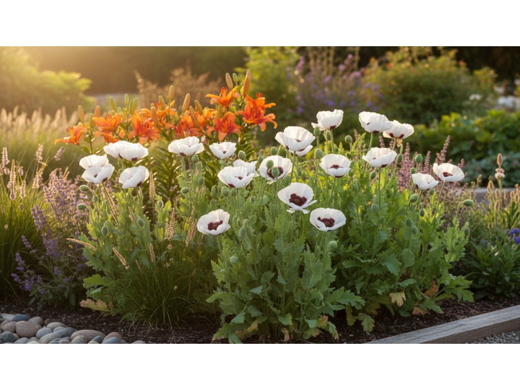 Mák velkokvětý 'Perry's White' je nenáročná rostlina vhodná pro slunné stanoviště. Po odkvětu se zatahuje, takže ji doporučujeme kombinovat s jinými trvalkami, které vyplní prázdné místo.