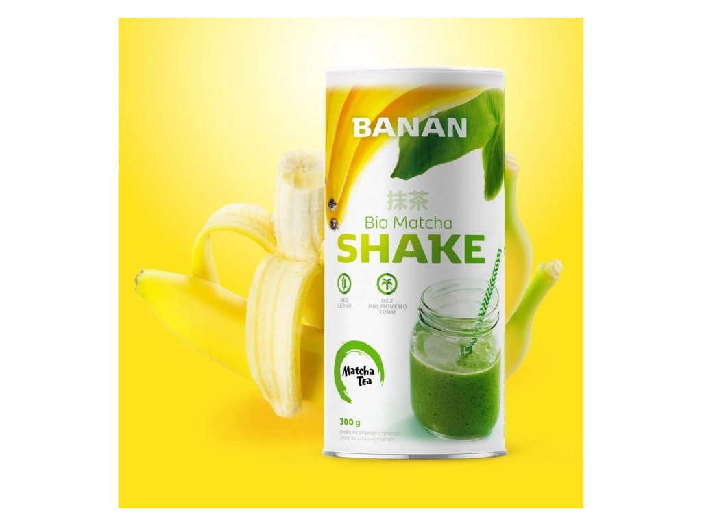 Bio Matcha Tea shake banánový neobsahuje lepek, palmový tuk ani rafinovaný cukr, je obohacen o vlákninu, bílkoviny a vitaminy A a C. Díky matchy vydržíte svěží a plní energie až 6 hodin, bez nárazového útlumu jako po kávě.