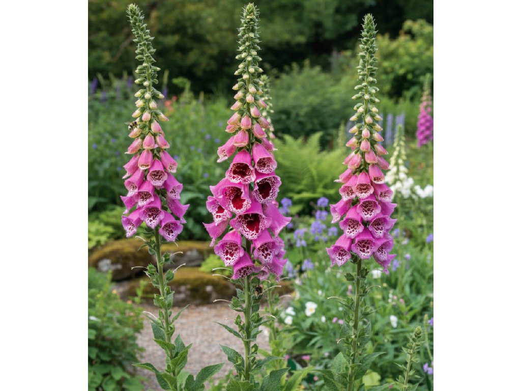 Náprstník vlnatý 'Giant Spotted' (Digitalis lanata 'Giant Spotted') vás zaujme vysokými klasy růžových květů s tmavou žilkovanou kresbou uvnitř. Zvonkovité květy této půvabné dvouletky rozkvétají v červnu a červenci. Vytváří atraktivní vertikální akcent v trvalkových záhonech i jako solitéra. Díky své výšce 80–90 cm je vhodný i k řezu, ovšem s mimořádnou opatrností. Všechny části rostliny jsou prudce jedovaté.