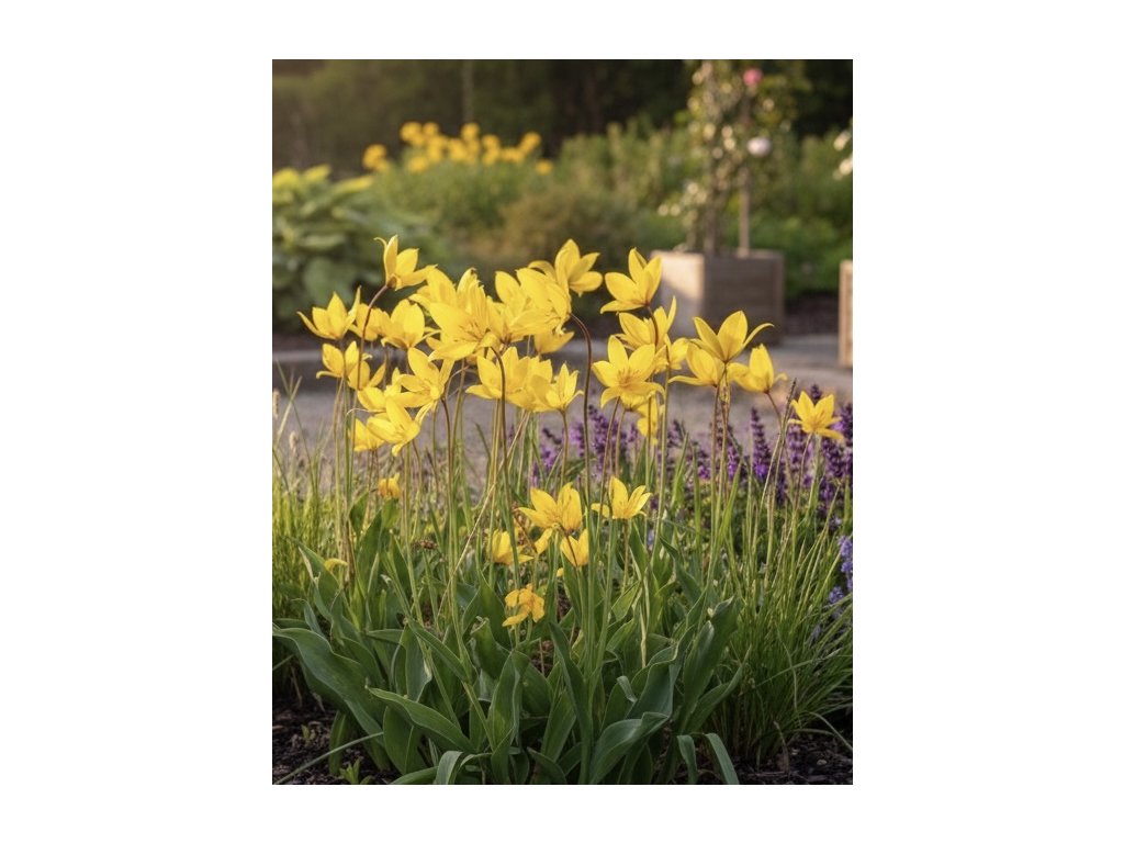 Tulipán 'Sylvestris' (Tulipa sylvestris) je známý také jako lesní nebo divoký tulipán. Patří mezi nejstarší botanické druhy. Jeho drobné, zářivě žluté květy s jemnou vůní působí, jako by na vaší zahradě rostly odjakživa. 'Sylvestris' je skvělou volbou pro milovníky přírodních zahrad. Často se samovolně rozmnožuje.