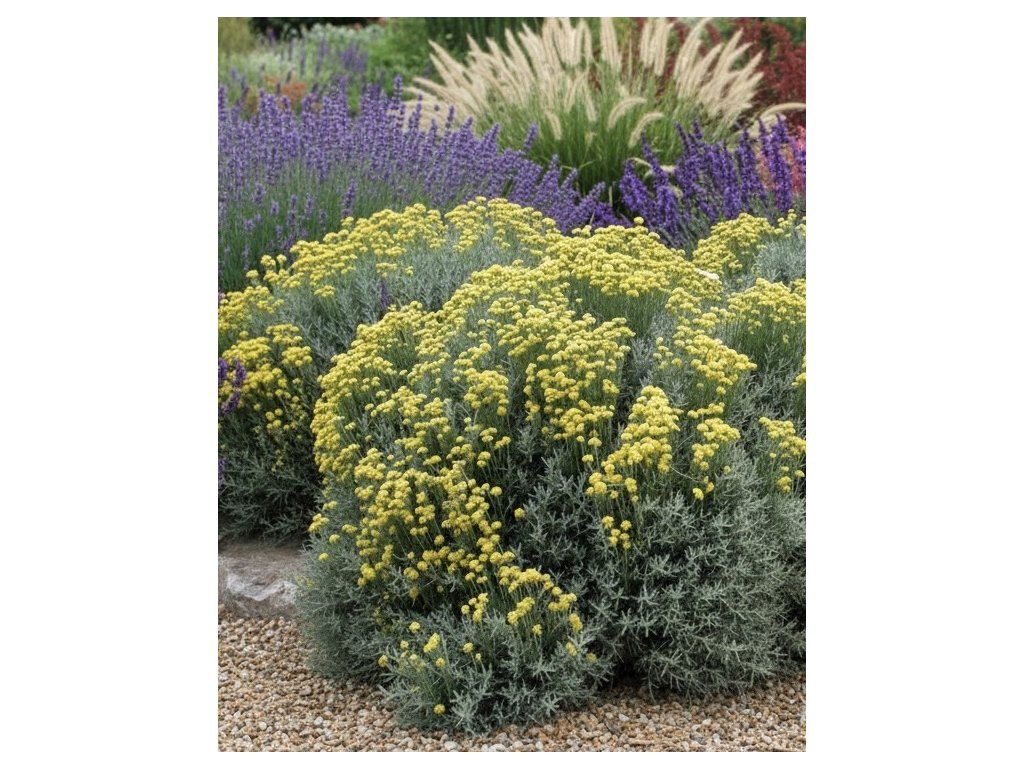 Svatolina cypřiškovitá (Santolina chamaecyparissus) je okouzlující rostlina známá pro své jemné, stříbřité listy a drobné žluté kvítky. Tento malý keř je ideální pro okrasné záhony, skalky a bylinkové zahrady. Svatolina je velmi odolná, snáší sucho a miluje slunná stanoviště, což z ní činí perfektní volbu pro zahradníky hledající nenáročné a atraktivní rostliny.