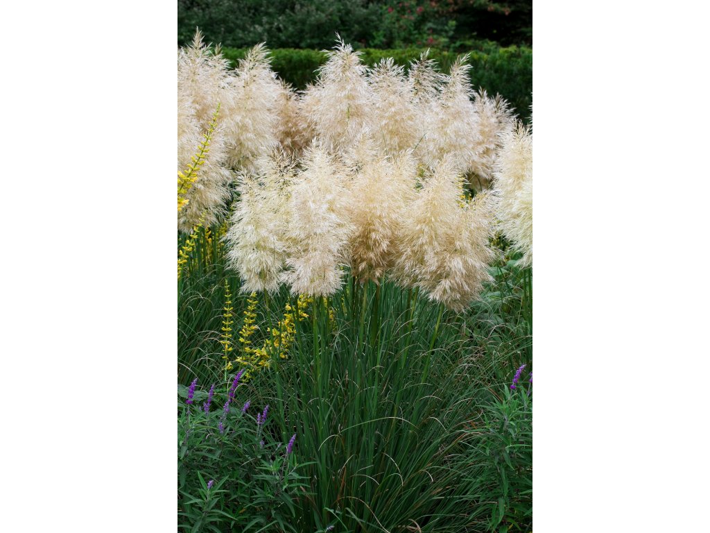 Pampová tráva 'Pumila' (Cortaderia selloana 'Pumila') je nižší kultivar majestátní kortaderie dvoudomé. Dorůstá výšky 120–160 cm a vytváří husté trsy obloukovitě převislých listů, nad kterými se od srpna do září objevují vzpřímené stříbřitě bílé laty. Dekorativní květy jsou vhodné i k řezu a sušení. Rostlina nejlépe vynikne jako solitéra, ale lze ji využít i ve skupinové výsadbě nebo pěstovat v nádobách.