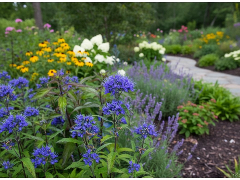 Ořechokřídlec klandonský (Caryopteris clandonensis) 'Grand Blue'® představuje krásně kvetoucí keř kompaktního tvaru, který dosahuje výšky zhruba 60 cm. Jeho květy jsou výrazně modro-fialové a patří k bohatším ve srovnání s jinými druhy. Tento okrasný keř rozkvétá od července do září, nabízejíc tak dlouhé období kvetení a krásné barvy do zahrady. Jeho listy jsou tmavě zelené s nádechem stříbrného rubu a mají příjemné bylinkově-kořenité aroma, což přidává další zajímavý prvek do celkového zážitku z této rostliny.