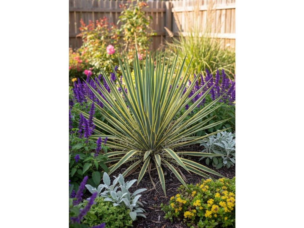 Juka vláknitá ‘Filamentosa Bright Edge’ (yucca filamentosa bight edge) je velmi atraktivní stálezelená okrasná trvalka, která zaujme úzkými, mečovitými listy s výrazným krémově žlutým okrajem a zeleným středem. Okraje listů jsou typicky opatřeny vláknitými vlákny, podle nichž juka získala své jméno. Díky exotickému vzhledu je výraznou dominantou zahrady po celý rok.