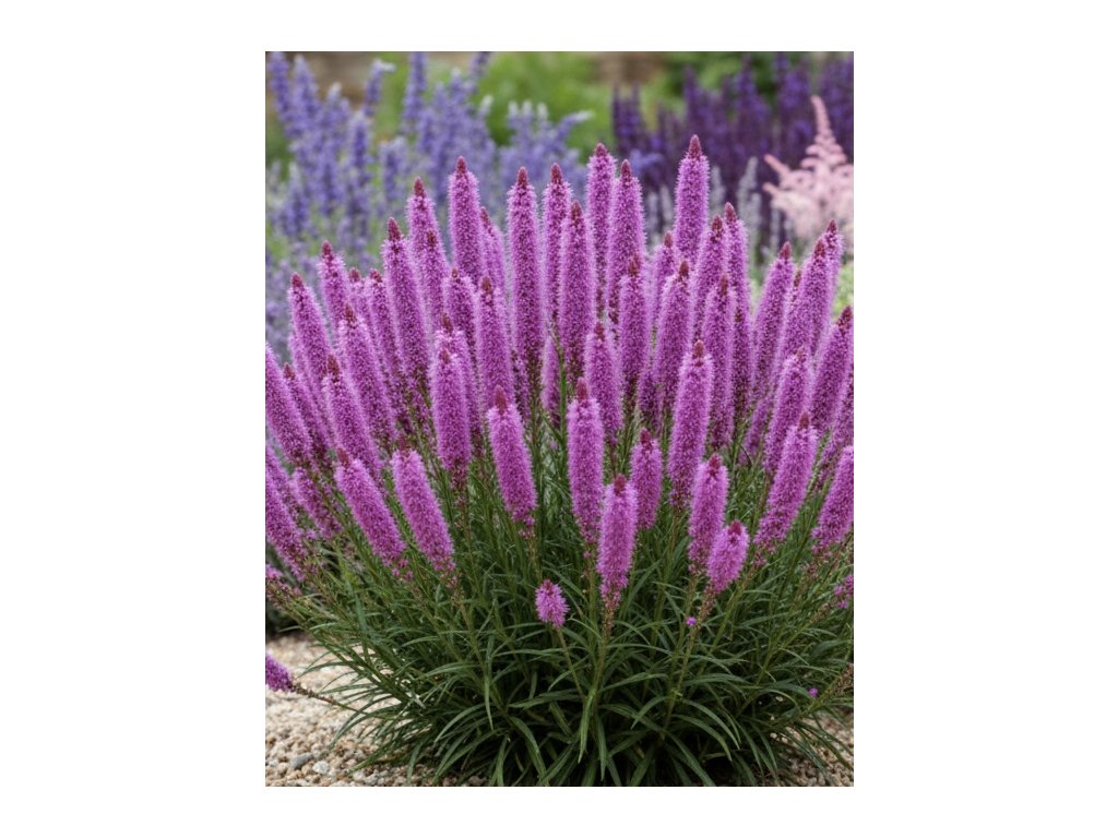 Šuškarda (Liatris spicata) je nenáročná trvalka. Tvoří ji třásnité fialové klasy, které kvetou v průběhu celého léta. Často se šuškardě říká také shorakvět, protože se její květy otevírají netradičně odshora dolů. Listy má úzké, hustě uspořádané v růžici při zemi a vypadá atraktivně i když zrovna nekvete. Přitahuje motýly a je vhodná k řezu.