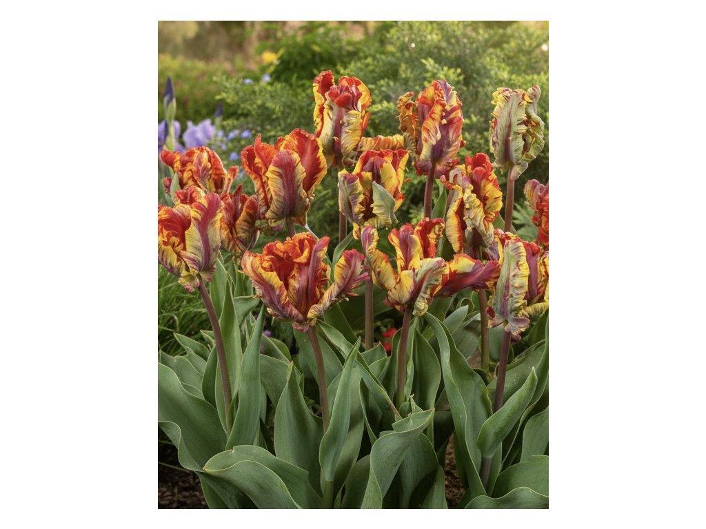 Tulipán Rasta Parrot je ohromující exotická květina, která svými živými odstíny žluté, oranžové a červené přináší sluneční záři do zahrady. Jeho zvlněné okvětní lístky a zelené akcenty dodávají tomuto papouščímu tulipánu neodolatelný vzhled. S výškou až 50 cm a velkými květy o průměru 8 cm je tato odrůda skutečně působivá a zaslouží si vyniknout ve vaší zahradě.