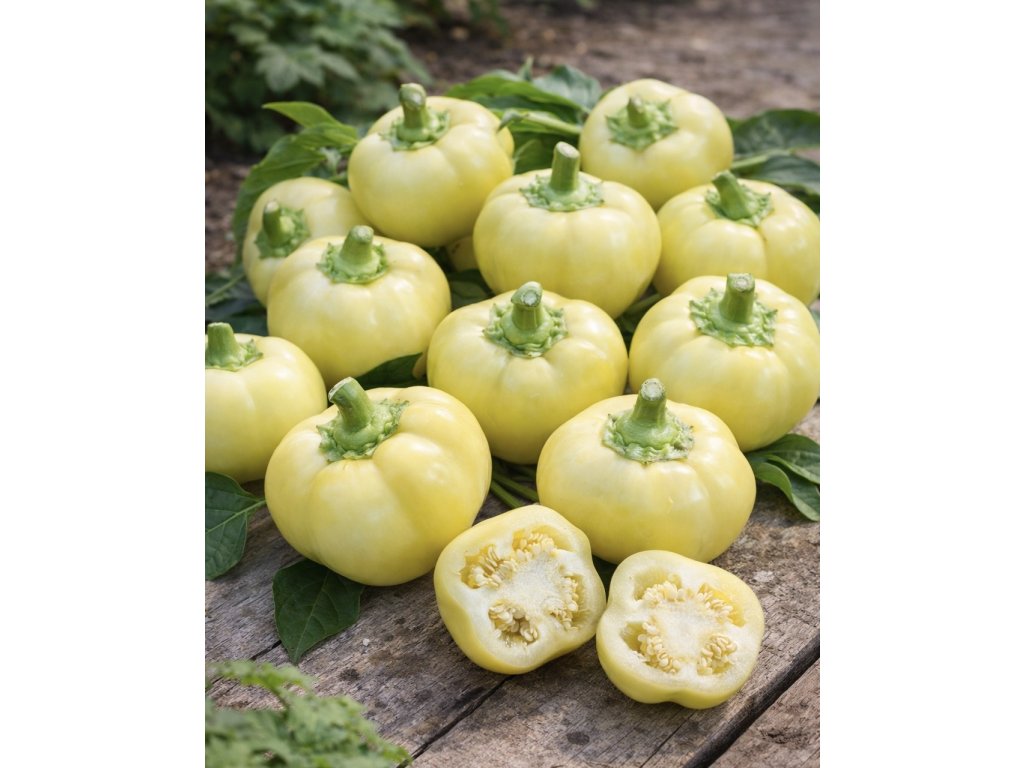 Jablíčková paprika patří u nás k méně pěstovaným typům. Sklízíme především v technické zralosti, kdy je dužnina jejích smetanových plodů velmi šťavnatá. Konzumujeme za syrova nebo používáme na plnění a následnou sterilaci.