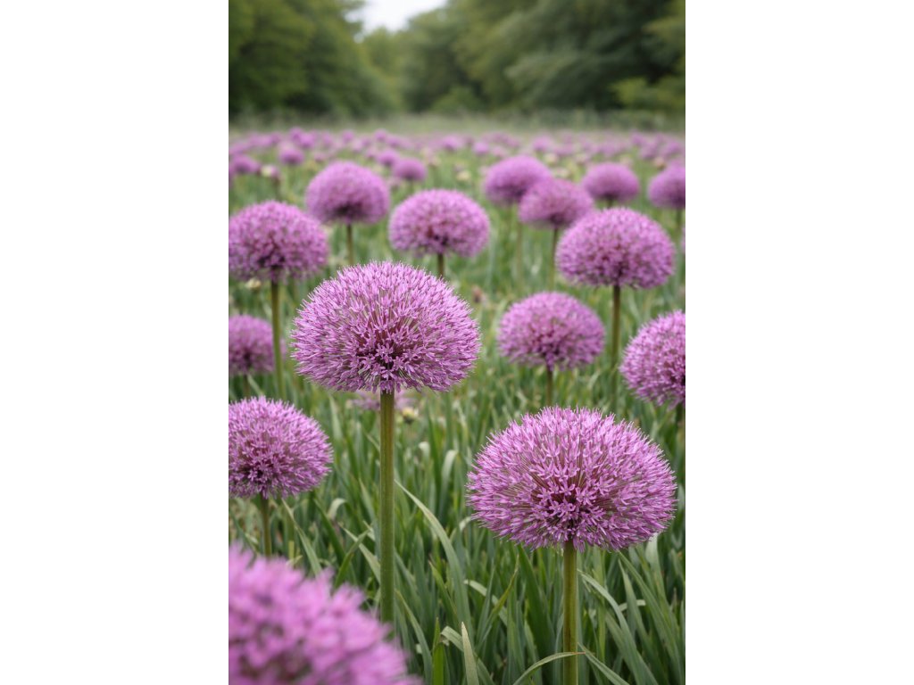 Česnek okrasný (Allium) 'Powder Puff' je atraktivní cibulovina, která zaujme svými velkými, kulovitými květenstvími v jemně růžových odstínech. Tato rostlina dorůstá do výšky 60-70 cm a kvete v červnu a červenci, čímž přidává do letní zahrady nádech elegance a barevnosti. Květenství česneku 'Powder Puff' tvoří stovky drobných kvítků, které dohromady vytvářejí působivé, nadýchané koule.