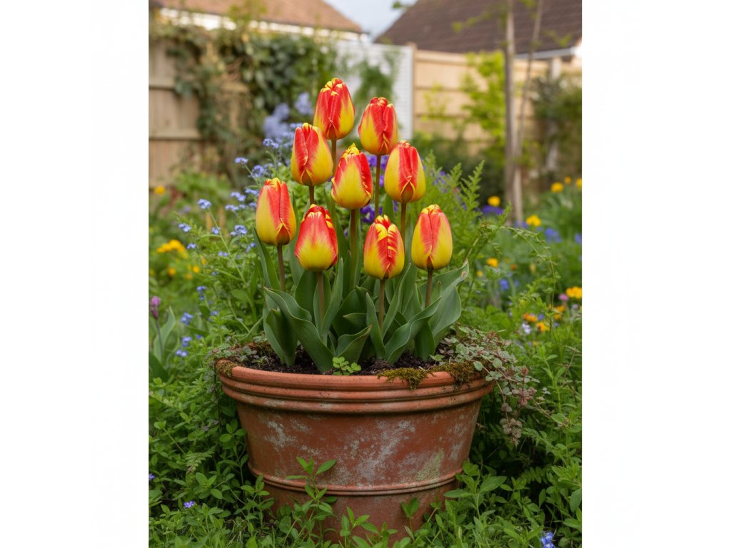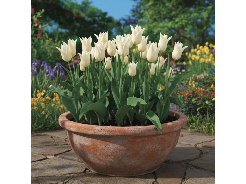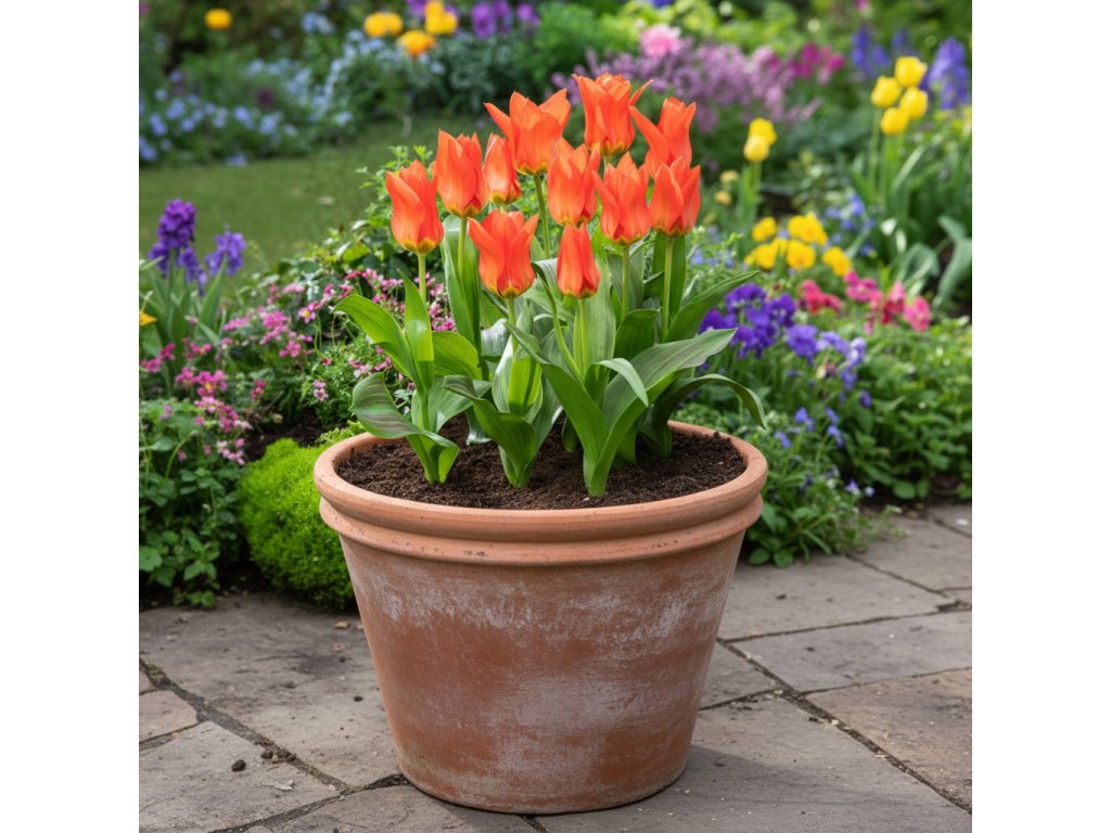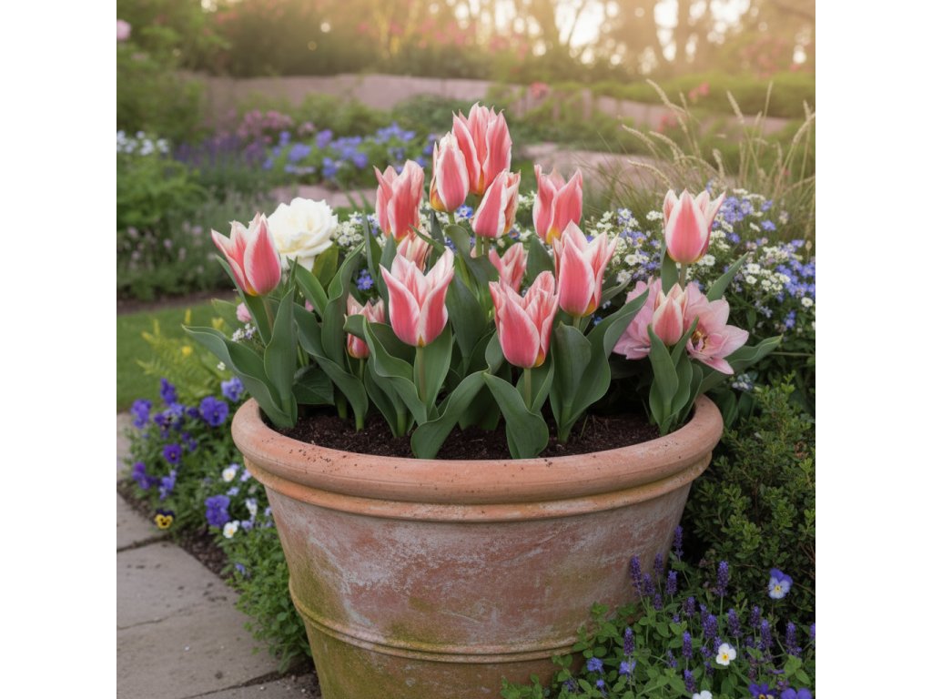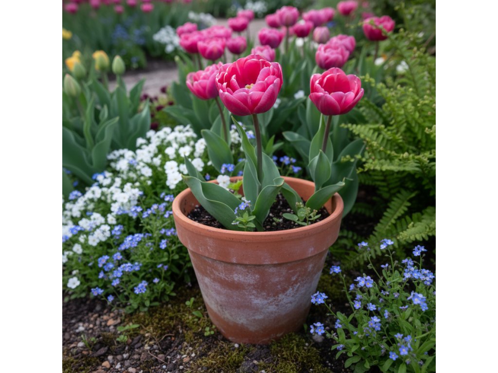 Cibule tulipánů vysaďte do hloubky přibližně 2–3násobku jejich výšky. Květináč umístěte na světlé, chladnější místo a udržujte substrát mírně vlhký. Na jaře se rostliny odmění bohatým kvetením.