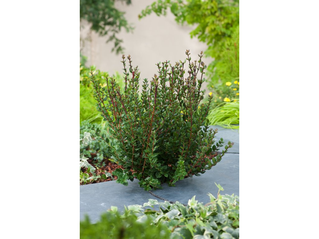 Myrta obecná (Myrtus communis) je půvabný stálezelený keř pocházející ze Středomoří. Byl považován za symbol lásky a nesmrtelnosti. Drobné, lesklé, tmavě zelené listy myrty voní nádherně po dotyku díky éterickým olejům. V létě se rostlina obsype množstvím drobných bílých kvítků s výraznými tyčinkami, které šíří medovou vůni a přitahují opylovače. Po odkvětu se objevují malé, kulaté modročerné bobule.