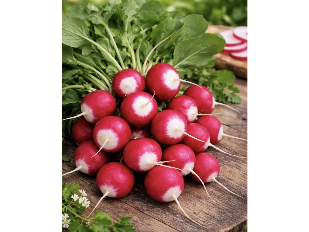Červenobílá, kulovitá až ploše kulovitá bulvička s převážně náhlým přechodem do středně silného hlavního kořínku. Povrch je hladký, v horních dvou třetinách šarlatově červený, ve spodní třetině bílý bez postranních kořínků. Dužnina je převážně narůžovělá, jemná, šťavnatá, nasládlá. Rostlina je slabě olistěná. Velmi raná ředkvička, hodí se pro rychlení i pro polní výsevy s intenzivní agrotechnikou. Odolná vůči vyšeptávání bulviček. Dobře se svazkuje. Jedna z nejranějších odrůd, vegetační doba je 31 – 35 dní.