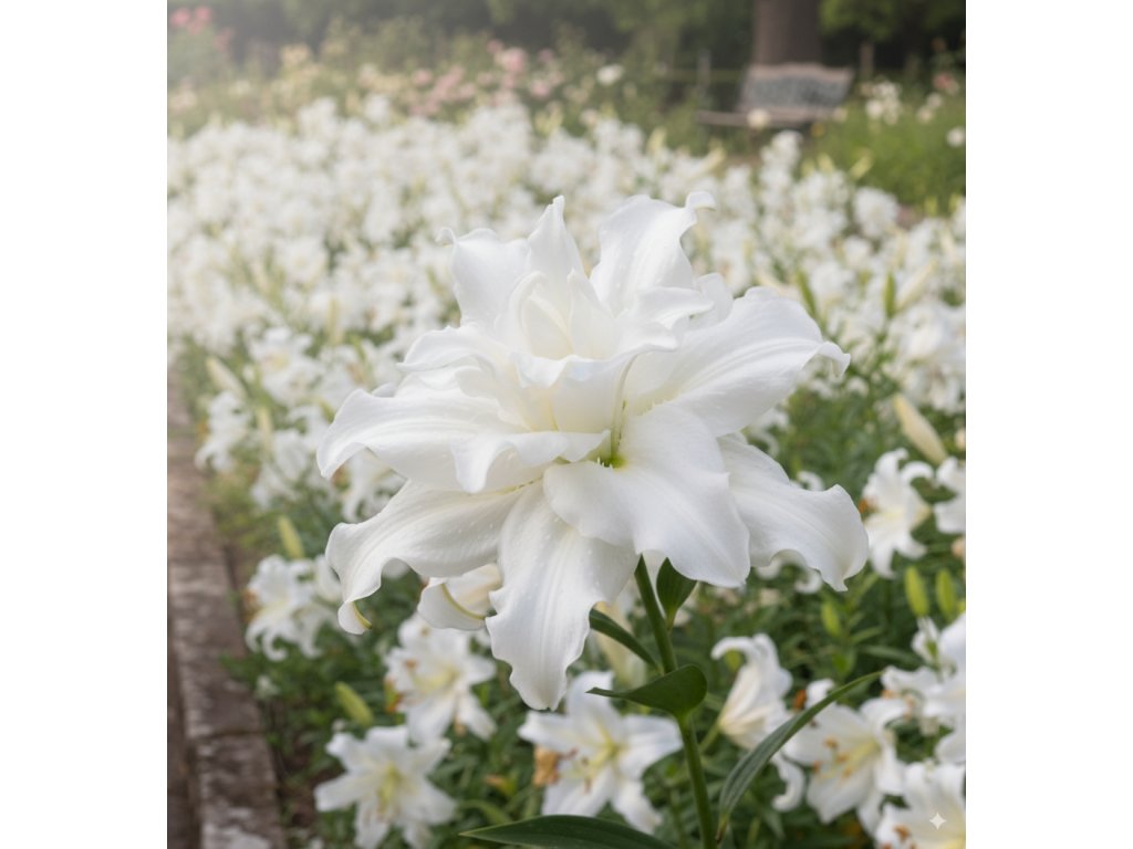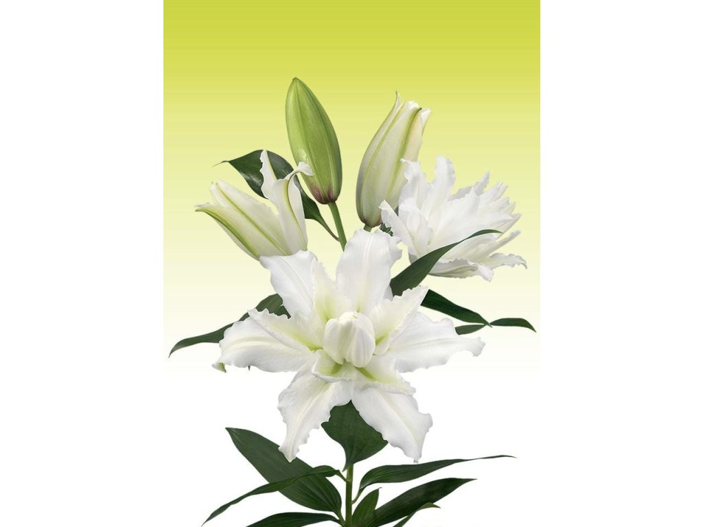 Lilie 'Roselily Eleonora®' (Lilium) se pyšní svou něžnou krásou a elegancí. Přináší svěží bílé květy s nařasenými okraji okvětních lístků, které překvapí svým něžně zeleným středem a příjemnou vůní.