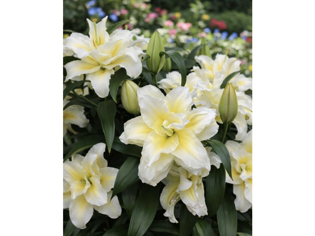 Lilie 'Roselily Irvana' (Lilium 'Roselily Irvana') přitáhne váš pohled díky plným bílým květům se žlutým srdcem. Její bohatý květ připomíná květinový paprsek slunce. Vynikne v záhonu i ve váze. Dorůstá výšky kolem 75–90 cm a potěší nejen svým vzhledem, ale i jemnou vůní.