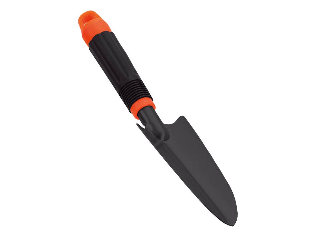 Úzká sázecí lopatka z oceli s masivní plastovou násadou pro pohodlnou práci.