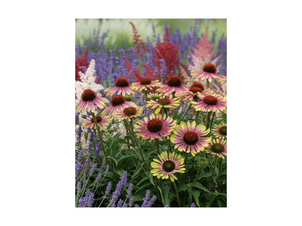 Třapatkovka nachová 'Green Twister' (Echinacea purpurea) je atraktivní trvalka s květy, které kombinují sytě růžový střed a zelené okraje okvětních lístků. Kvete od července do října a dorůstá do výšky 80–100 cm. Tvoří pevné vzpřímené stonky s výraznými květy, které jsou oblíbené u opylovačů.