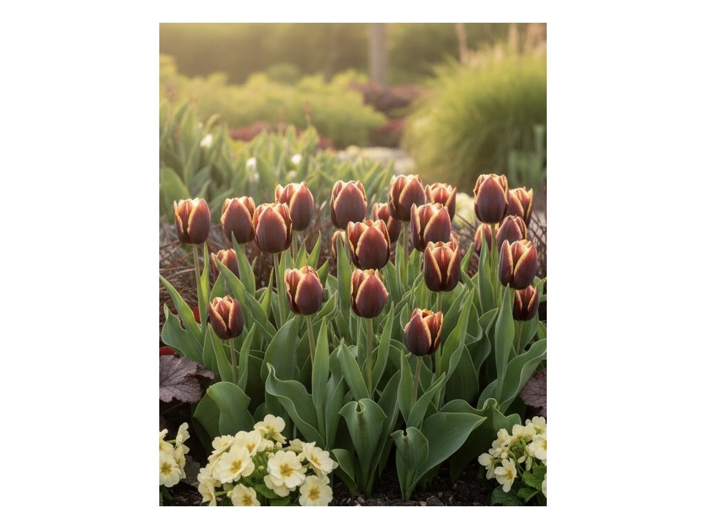 Tulipán 'Doberman' má překrásné tmavě vínové květy, které jsou zvýrazněny zářivě žlutými okraji. Krásně vynikne na záhonech, skalkách, ale zasadit ho můžete i do květináčů. Je také velmi dobrý k řezu, ve váze vám dlouho vydrží.