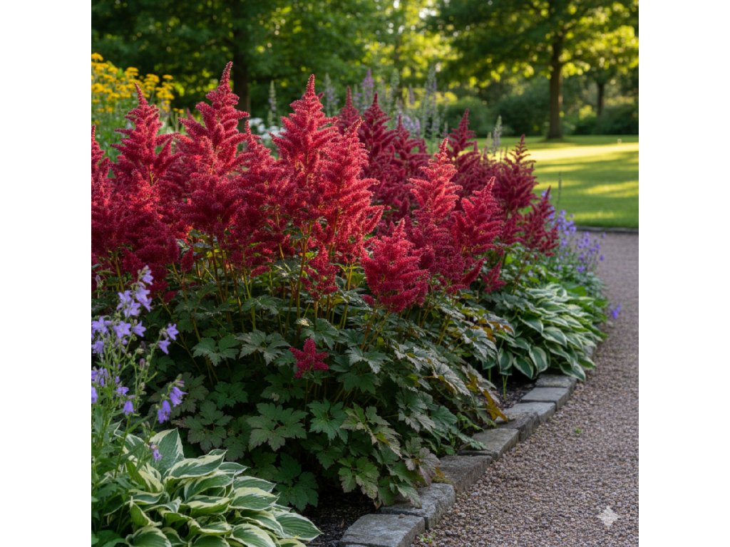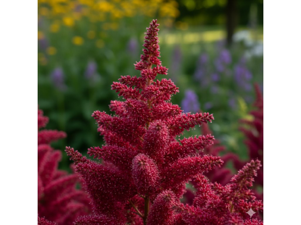 Čechrava Arendsova 'Fanal' (Astilbe arendsii 'Fanal') je elegantní trvalka s bohatými, sytě červenými květenstvími, která rozkvétají od června do srpna. Dorůstá výšky kolem 60 cm a vytváří husté trsy tmavě zelených, zpeřených listů. Díky svému atraktivnímu vzhledu a nenáročnosti je ideální do smíšených trvalkových výsadeb v polostínu nebo stínu.