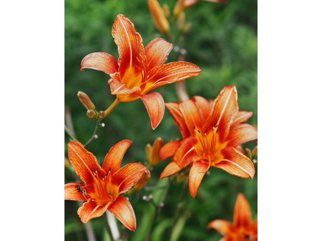 Denivka 'Autumn Red' (Hemerocallis 'Autumn Red') je atraktivní trvalka s velkými, sytě červenými květy, které mají jemný oranžový nádech a výrazný žlutý střed. Tato odrůda kvete od června do srpna a vyniká svou schopností znovu nakvétat, což ji činí skvělou volbou pro dlouhotrvající okrasu zahrady. Ideální je pro smíšené záhony, okraje cest nebo jako solitér.